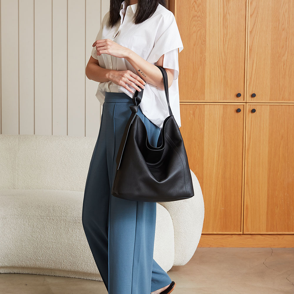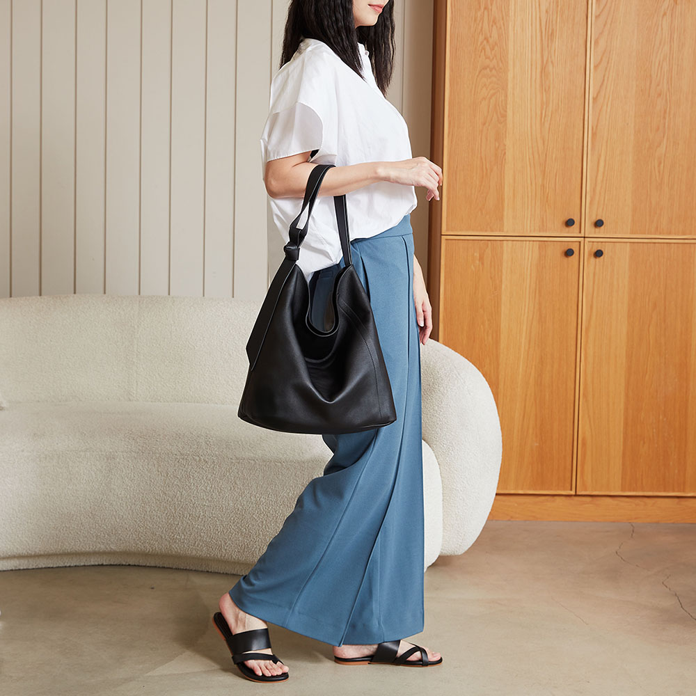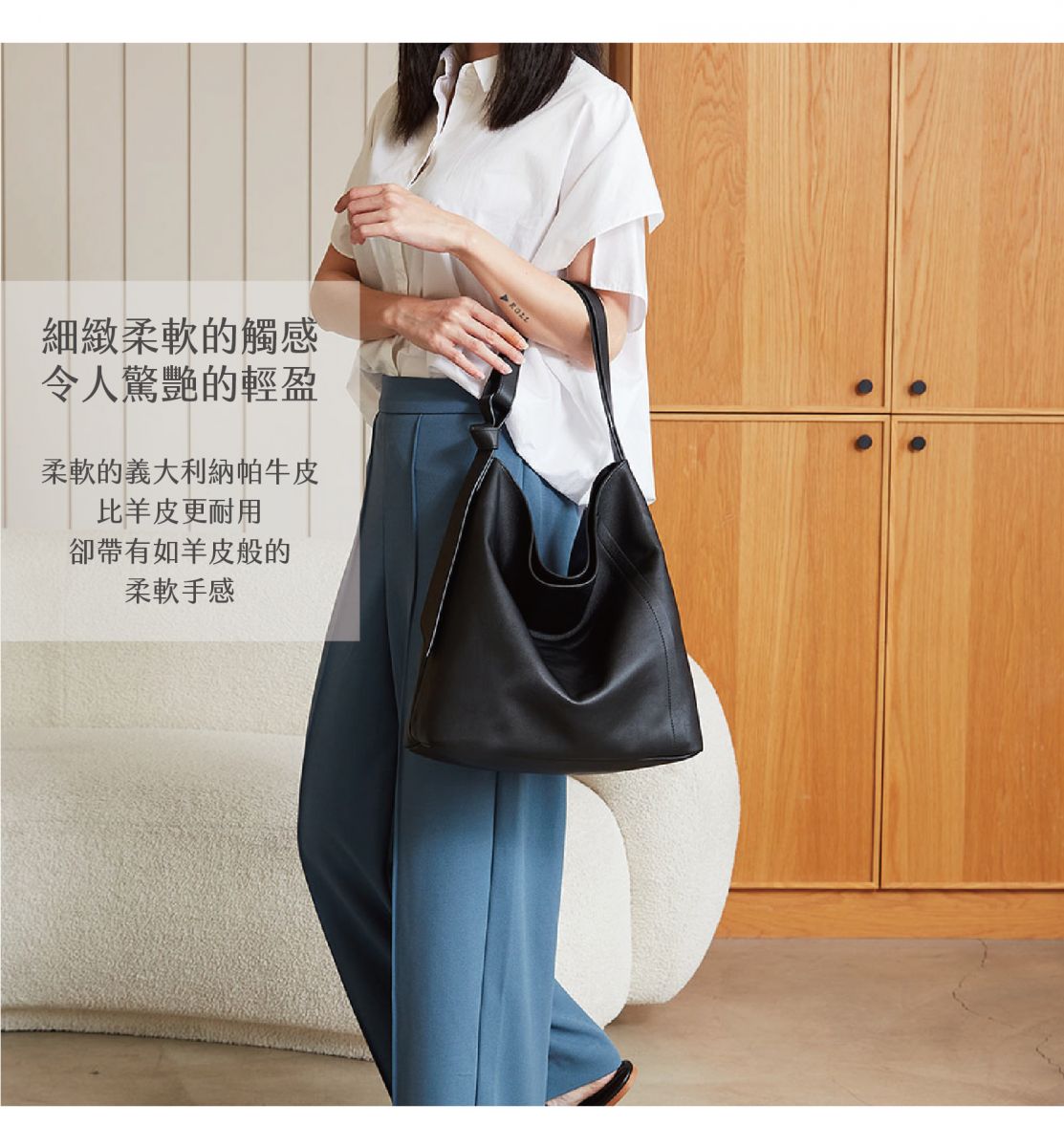 選用柔軟進口義大利納帕牛皮 手感柔軟、皮紋細膩 手感豐厚滑順 如山谷般純粹自然 保留了細膩的紋路和柔軟的手感 -特色扭結背帶設計 -軟包硬底設計 -隱形磁釦設計 -拉鍊內袋