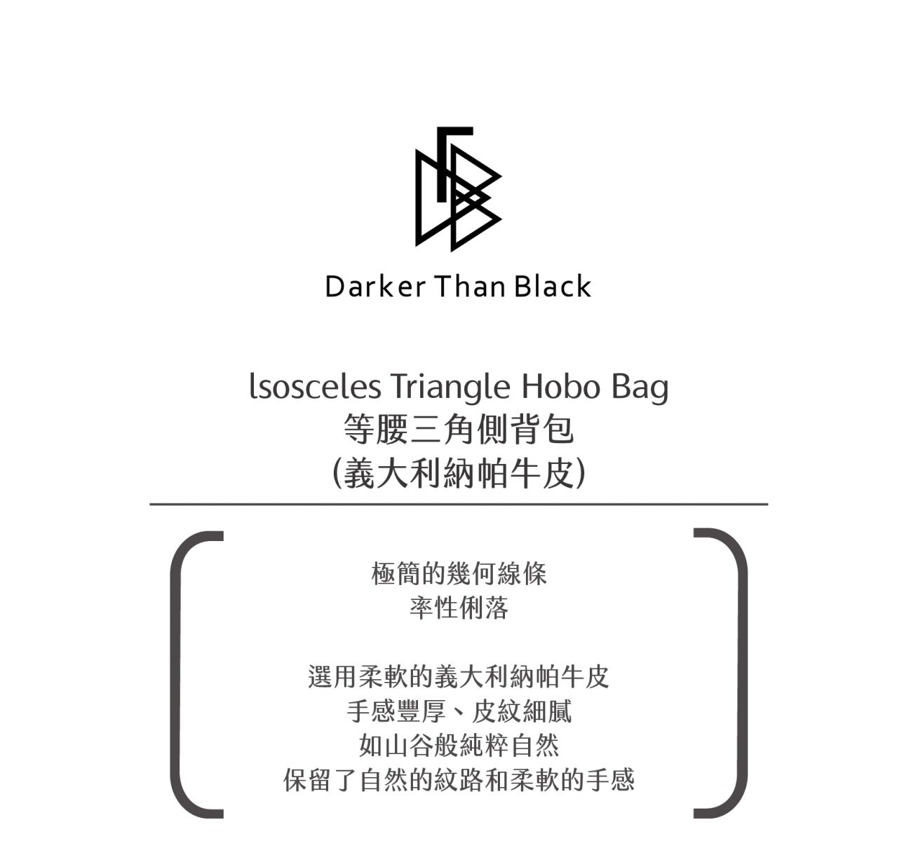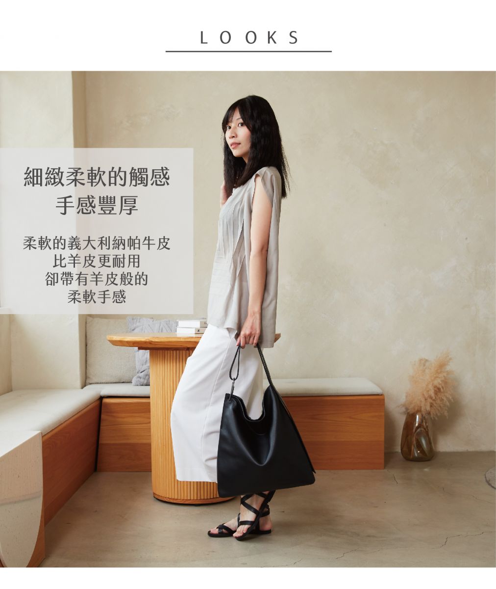極簡的幾何線條,率性俐落。 選用柔軟的義大利納帕牛皮, 手感豐厚、皮紋細膩, 如山谷般純粹自然, 保留了自然的紋路和柔軟的手感。 -隱形磁釦設計 -兩用背帶 -包身輕量化 -拉鍊內袋